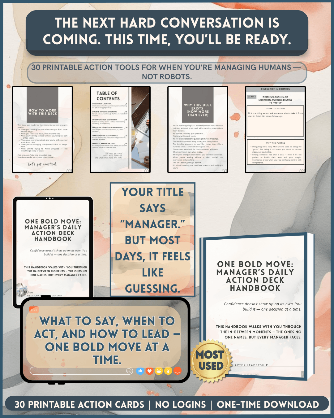 It is a printable set of 30 scripts, responses, and micro-actions for the toughest moments managers face: